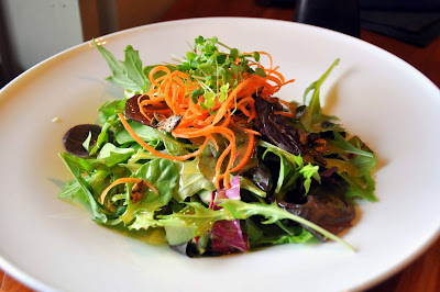 Unfortunately, Dave has an allergy to soy, so his choices were even more limited. He decided to play it safe and ordered the gourmet salad and a side of French fries. He couldn't stop raving about the maple lemon dressing though!